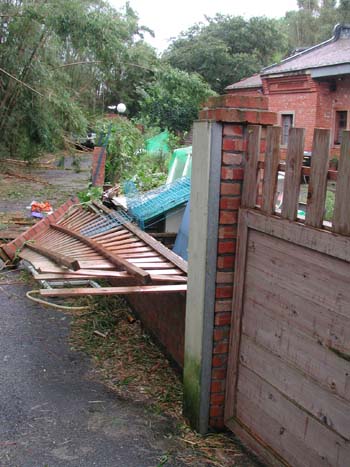 這次颱風除了這面圍牆倒了之外,其他並沒太大的損失.只有盆栽有些微受損.