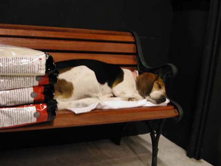 能睡在四大包有機飼料旁邊,Mia應該做夢也會笑吧!呵!