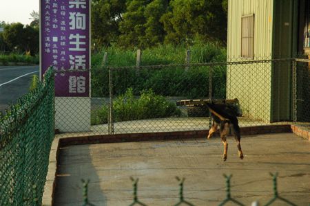 也不是沒想過放牠出來時,就掛個「內有猛獸,請勿拍打鐵絲網或餵食」牌子,不過還是在旁看著算了,還得提醒郵差,宅急便跟訪客不要靠圍欄太近。