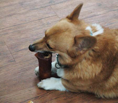 咱們家的狗子們,可從來沒這個問題,不論是高的矮的,胖的瘦的,只要一拿到骨頭,自己會想辦法下手解決骨頭,以口就骨頭,完全不需假我們之手。
