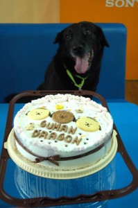 其實我們家因為狗女兒狗孫多,是不大幫狗慶生的,因為連我們自己兩老過生日都很少買蛋糕慶生了,更何況一打狗子,有的還不知道出生年月日…哈。不過,拜古曼之賜,每年大家都有個名義可以一起慶生,一起吃蛋糕囉!而且每年的生日蛋糕看來都很讚,每年古小曼都可以吃到不同的生日蛋糕,真的很幸福^^(Zoe她們在旁小聲說,我們可以跟著沾光,更幸福啦:p)